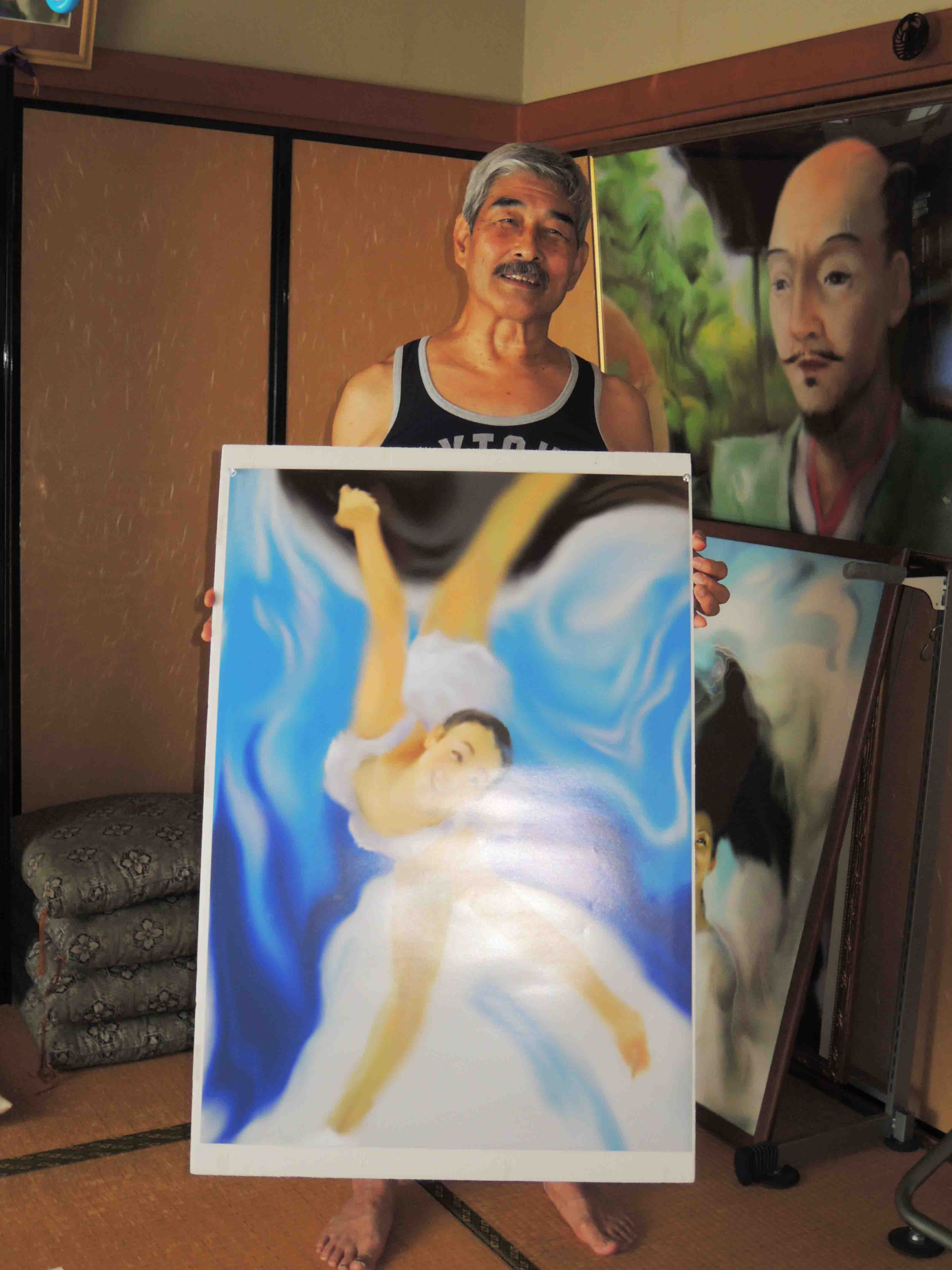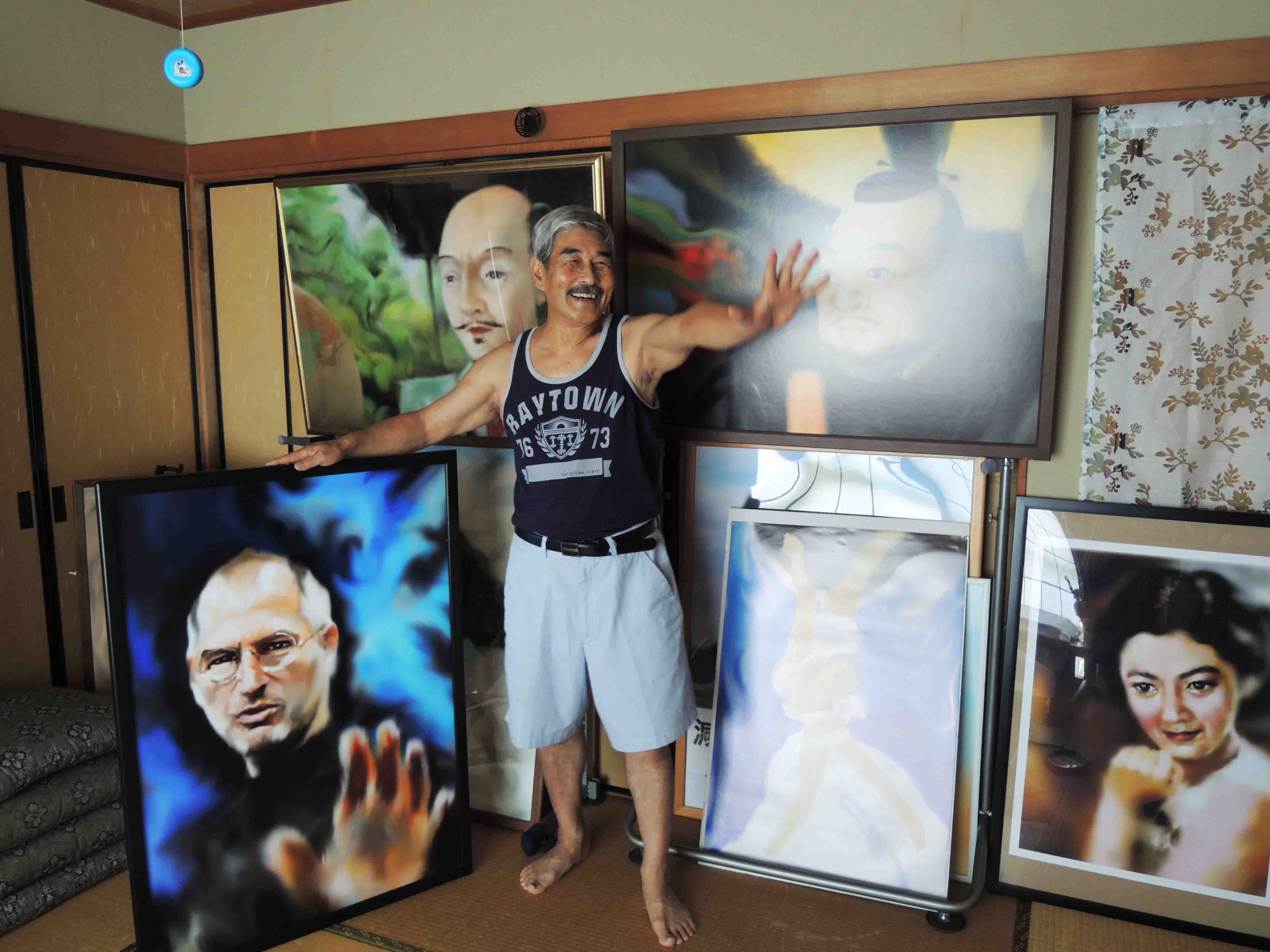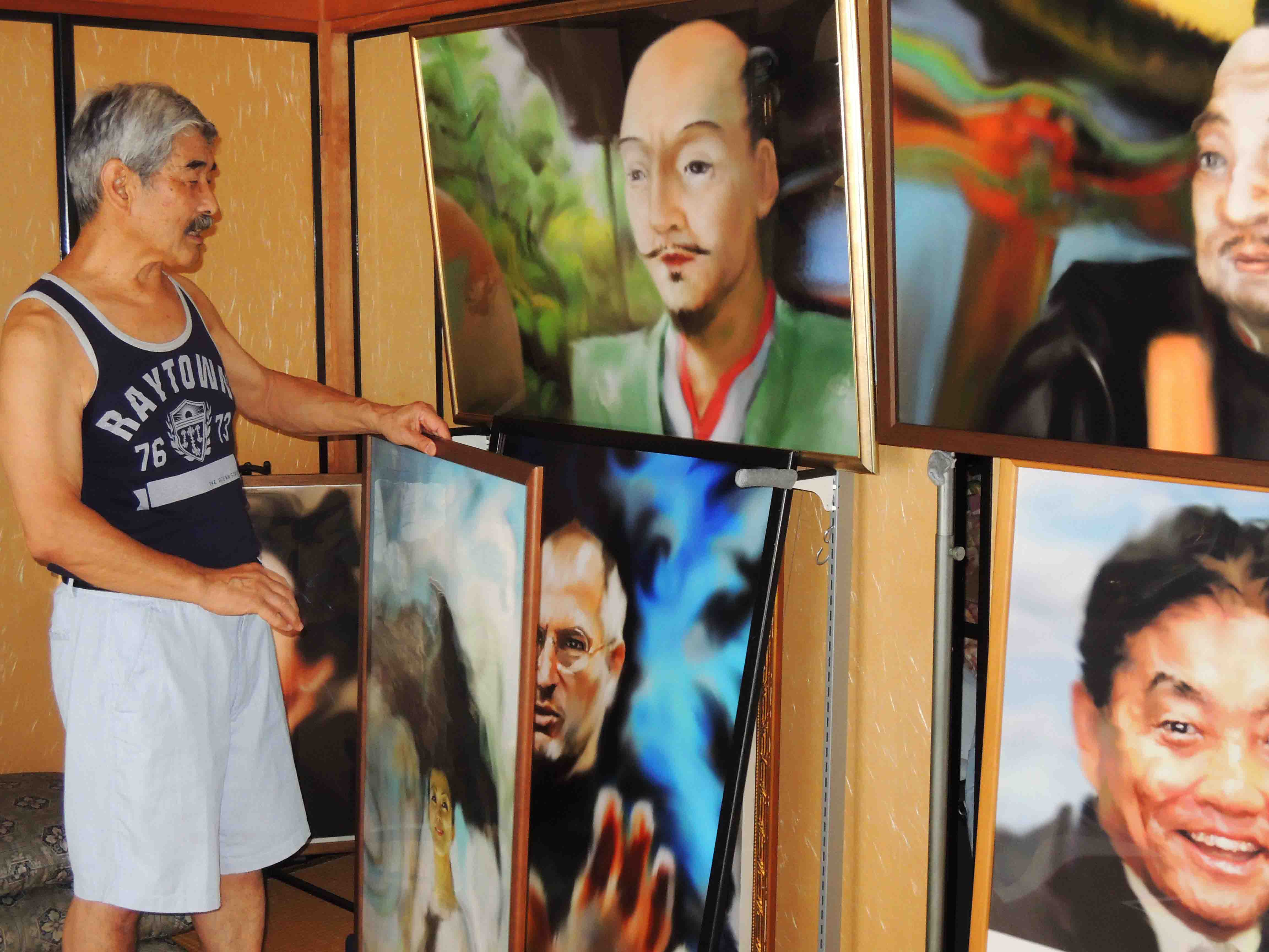 お部屋にお邪魔してまず目に飛び込んできたのがたくさんの絵でした。絵と分かって伺ったのに、写真だと思っちゃうほど(#^.^#)平面的でなく、立体的な絵で奥行きがあり、素人の私ですが、「すごい!!」の一言です。三英傑からアップルの創業者 スティーブ・ジョブズ、フィギュアスケートの浅田真央ちゃんまで、幅広いジャンルの人物画が並んでいました。