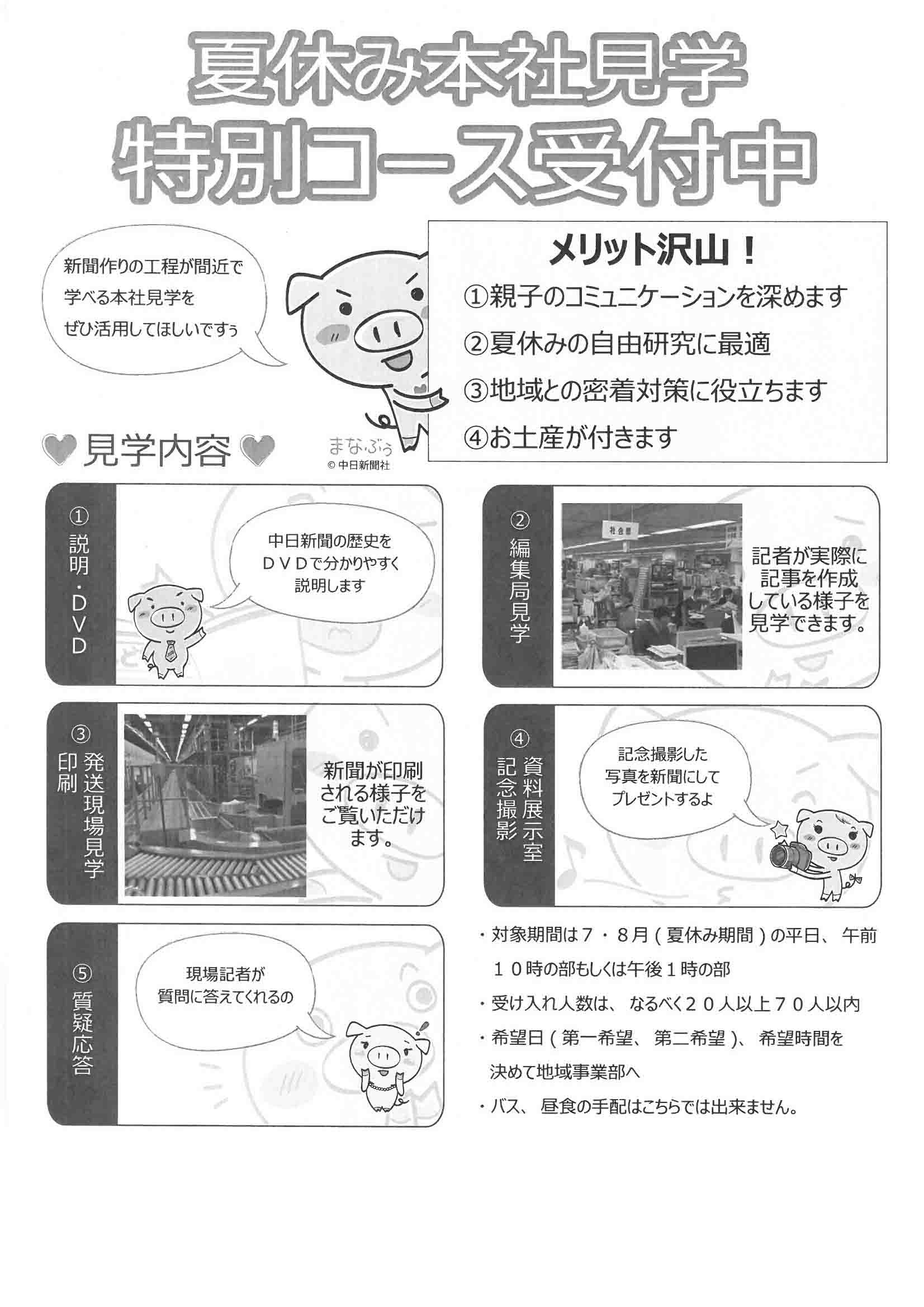 【夏休み中日新聞本社見学特別コース】受付中!