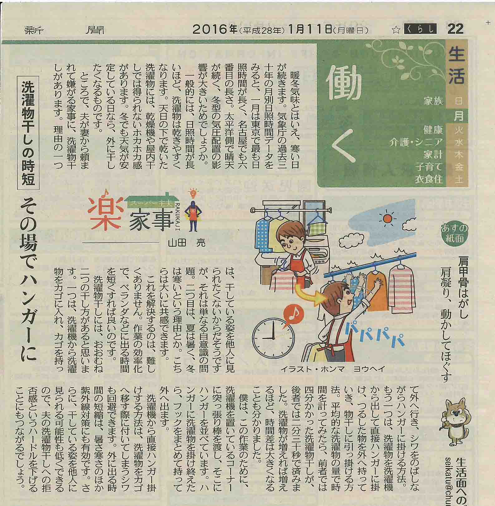 1月11日(月)の生活面「洗濯物干しの時短 その場でハンガーに」を読んで、早速試してみました!